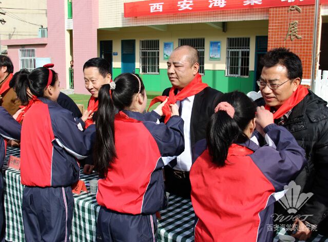 爱心捐赠仪式开始前,东街小学可爱的同学们率先为出席捐赠仪式的领导们亲手系上了代表他们温情祝福的红领巾;洛南县县委常委、统战部部长支朝奇代表洛南县县委、县政府宣读了欢迎词;王安龙副主委和王卓董事长代表农工党陕西省委和海棠学院分别向东街小学捐赠了10台笔记本电脑和30套高配置品牌电脑。