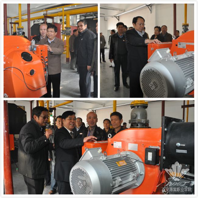典礼结束后,学院领导走进燃气锅炉房在工作人员的指导下,点燃蒸汽锅炉,依次参观了锅炉设备,了解学院供暖管网铺设情况和燃气锅炉有关技术参数。