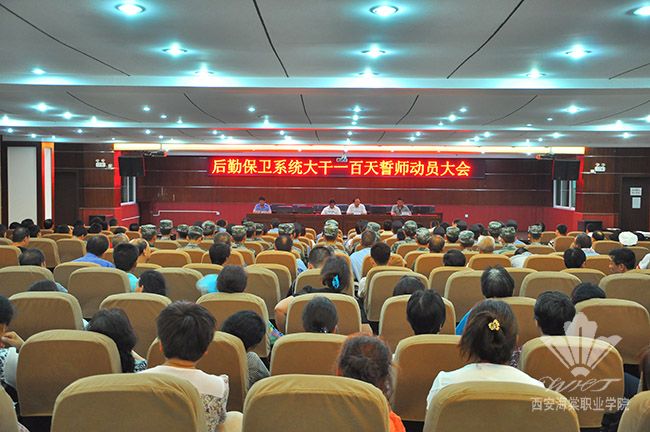 6月17日下午,我院后勤保卫系统在学术报告厅隆重举行了“大干一百天,我为海棠做贡献”誓师动员大会。学院院长冯居秦,副院长吕博、赵景利出席动员大会,部分中层干部和保卫处、总务处、预备役应急分队的全体成员,以及校内部分经营户代表参加大会。动员会由保卫处处长袁再胜主持。