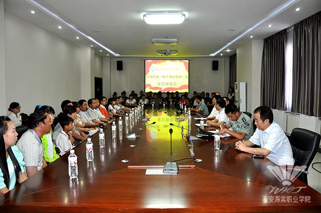 座谈会中上,各位家长与学员首先一同观看了预备役应急分队日常训练、生活的专题记录片。随后。宋党助院长发表讲话。他表示经过对人才市场的考察和对行业现状的分析,海棠医药科技集团董事长王卓率先提出成立市场营销(准军事化班),并亲任助学大使为学院捐资助学,帮助技师学院企业营销班顺利开班。接着,他用一个个鲜明生动的实例为在座家长展现出了市场营销(准军事化)班学生的成长与变化及校企合作培养的巨大优势。宋党助院长精彩的讲话不时被掌声打断,整个座谈会场面温馨而热烈。技师学院教学副院长杨国锋则向在座家长介绍了海棠技师学院市场营销(准军事化)班日常教学管理模式和录取标准,并进一步解释了准军事化管理、校企联合的培养模式。董艳金连长在讲话中介绍了预备役应急分队准军事化管理方式和基本经验。闫惠明总经理在讲话中重点突出了“送教入企”这一校企合作培养模式对企业和员工的重要受益。学生代表和家长代表的发言是本次座谈会一大亮点。学员们发言时一个个精神抖擞、声音洪亮,他们欣喜地向学院领导和家长汇报了自己近半年的成长与变化和自己对未来发展的规划。康福军同学在讲话中表示,来到海棠之后自己越来越明白了家长的苦心,也让我明白了很多年自己不明白的道理,学院准军事化管理的方式让我在学习和生活上都有了很大的提升,在以后的时间里我将会认真对待我的生活,争取成为一名企业精英和家庭的支柱。