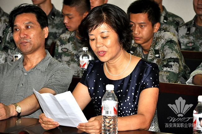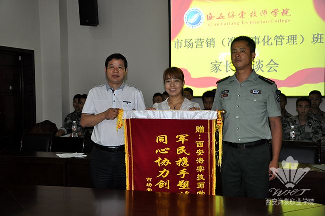 学员们铿锵有力的吐字、标准的军人作风博得了家长和领导们的阵阵掌声。家长代表们则在在发言中情真意切地道出了自己的对学院的感激之情和对孩子成长变化的欣慰之情。为了表达感激之情,班级学员韩佳伟的母亲将一面绣有“军民携手塑栋梁英才,同心协力创一流大学”的锦旗赠与技师学院。