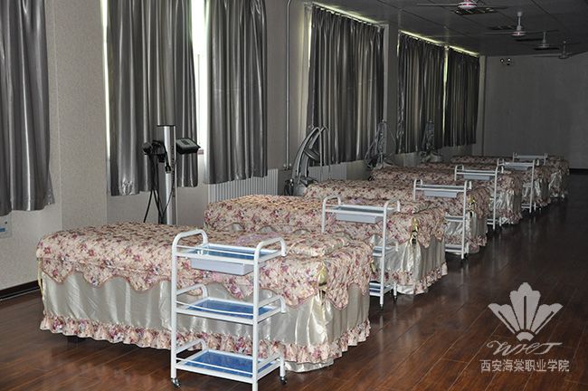 据该工程负责人中医美容学院副院长李锋利介绍,医学美容实验实训中心二期工程在一期工程的基础上共增设了13个实训室。分别为中医美容护理实训室2、生活美容护理实训室2、抗衰实训室、媒体实训室、纤体塑形实训室、康复运动实训室、康复理疗实训室、经络腧穴实训室、推拿实训室、化妆品品牌展示实训室、化妆品陈列实训室、非药物综合实训室、光学实训室。除康复运动、康复理疗、化妆品陈列、非药物综合这四个实训室以外,其余九个实训室都已购进了规定数量的美容床及配套美容仪器。