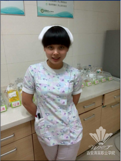 “在学院医务室见习,更多的是与在校学生接触。刚开始扎针的时候,一针扎下去,有时候会偏针,需要拔出来重新扎,学生心里会有些许不满,所以这就要求我的操作能力更要扎实,对待同学也要客气。”赵雅波说道。在学院医务室呆了两年,赵雅波的技术日益见长,在正式分配实习前,陕西省第四人民医院来学院选人,她很顺利的就被选上,并且当了护理实习组组长。在医院实习时,她比别的实习生有更多的经验,操作手法也更为娴熟,所以当别的实习生给患者换药患者问是什么药而答不上来手足无措的时候,护士长不让刚去的实习生给病人扎针的时候,她已经可以游刃有余地给病人扎针,与病人轻松沟通,这与她在学院医务室两年的见习经历是分不开的。谈到这里,她也很感谢在医务室帮助过她的医生与同事们。