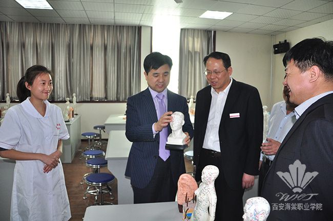 双方在一号会议室举行了座谈会,在简单的互相介绍之后,一同观看了学院纪录片。观看过程中,陕西服装工程学院一行人频频鼓掌,对我院中医美容专业给予高度评价。随后,在冯院长等领导的陪同下,陕服学院的访问人员参观了我院医学美容实验实训中心、中医美容博物馆、校史馆、医学类实验实训室。吕明董事长一行对我院博物馆建设和实训室的配备赞不绝口,称赞我院实训教学投入力度大,设施先进一流,为培养学生实操技能提供了强大保障。