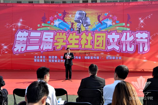 党办主任陈义龙在开幕式上宣读了院团委《关于举办西安海棠学院第三届学生社团文化节的通知》,技能鉴定中心王文强主任为各社团指导老师颁发荣誉证书及纪念品。副院长吕博向社团联合会副秘书长黄平授旗,院团委石博书记宣布bat365正版唯一官网第三届学生社团文化节正式开幕。