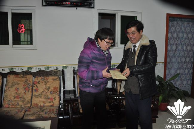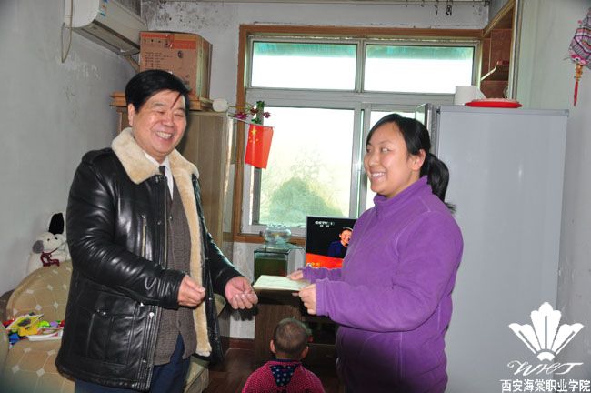 元旦当天,迎着新年的朝阳,党委副书记王爱民一行驱车前往灞桥区田洪正街庆华新区中医美容学院教师耿肖沙家中,看到王书记一行到来,耿肖沙和家人十分高兴。王书记与大家坐在沙发上亲切的聊天,不断的询问耿肖沙的家庭情况、收入来源,得知她与公婆同住,王书记关切的询问公婆的身体情况并嘱咐她要照顾好公婆的身体。交谈过程中王书记表示,海棠事业的发展离不开每一位教职员工的努力,员工们生活的快乐、舒心,工作才能干的好,海棠事业才能更好。王书记的一席话让耿肖沙的家人很有感触。