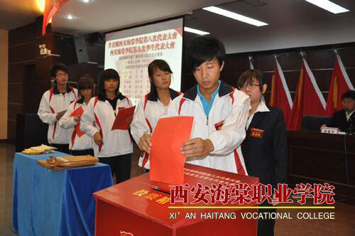与会领导和代表对新一届团委和学生组织充满信心并寄予厚望,相信他们必将为bat365正版唯一官网共青团事业的明天描绘出更加宏伟的蓝图!至此,西安海棠学院第八次团代会、第九次学代会圆满完成了各项任务,在庄严的国际歌中胜利闭幕。