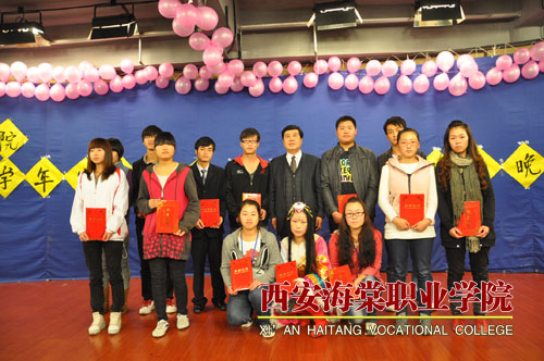 为了欢迎加入记者站的新同学,丰富社团文化生活,10月23日下午,西安海棠学院记者站2010—2011学年第二学期表彰暨迎新晚会在1号楼广播大厅隆重召开。     西安海棠学院党委副书记王爱民、记者站指导老师侯月瑞、宣传处的各位老师及记者站全体成员参加晚会。     晚会开始前,对上学期记者站的13名优秀工作者和先进个人给予了表彰奖励。王荣茂、罗丹娜、王吉祥等6名同学获“优秀工作者”称号,李美玲、李静文、鲁浩等人获得“先进工作者”称号。