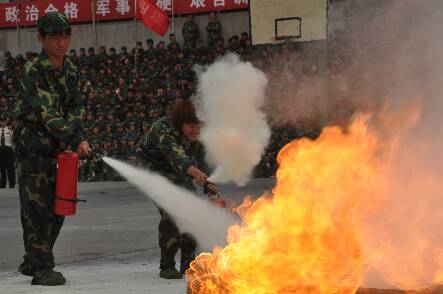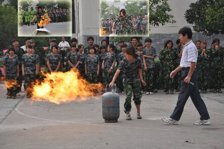 军训团举行防火演练