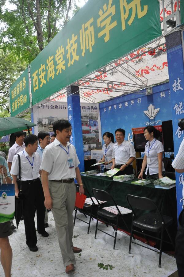 7月29日,由陕西省人力资源和社会保障厅主办的2011年技能人才队伍建设暨技工院校招生宣传活动在四季常绿、景色迷人的西安市革命公园隆重举行。陕西省人力资源和社会保障厅副厅长、陕西省技工院校招生领导小组组长沙德宪等领导出席活动。陕西省近80所技工、技师院校参加了活动,数千名学生和家长参加了咨询会。西安海棠技师学院应邀参加了现场招生咨询活动。