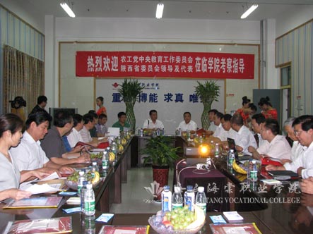 农工民主党中央教育工作委员会主任吕振华听完汇报后表示:多年来,西安海棠学院坚持走产学研相结合的办学之路,取得了辉煌的办学业绩,的确来之不易,国家和社会应该感谢你们。希望海棠学院以高度的政治责任感和历史使命感,再接再厉,不断创新,与时俱进,不断创新模式,加强教育教学改革,将学院办成政府放心,人民满意,社会认可的一流民办高等学府。