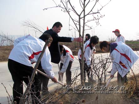 一路上,同学们有说有笑,都兴奋的期盼着亲手种下一棵棵希望之树。到达目的地后,同学们扛着铁锹,男女搭配开始植树。只见他们先把树栽进坑里,然后拿铁锹往里面铲土,整个植树过程显得井然有序。同学们认真的干着,问及他们有什么感想时,都激动地说很开心,这次活动十分有意义。学院还专门派了消防车为新栽树木浇水。