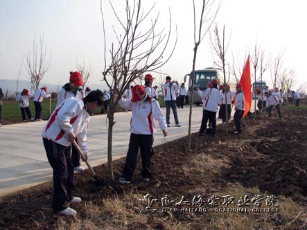 忽如一夜春风来,千树万树梨花开。3月10日上午8时,学院团委、学生会、社团管理委员会三大组织的学生着统一服装在校车的护送下前往白鹿塬五坊村北沟参加植树活动。