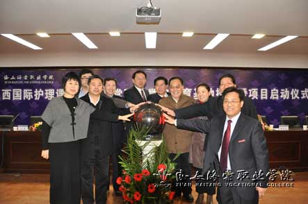 国际护理培训授牌仪式暨项目启动仪式在一阵欢呼声中取得圆满成功。冯院长在讲话中指出,国际护理培训基地在我院的建立将会形成“有利于我院护理专业的发展,有利于学生的成材,有利于国际护理培训中心的发展”的三赢局面,将为有出国就业意愿的学生走出国门,为经济困难的学子出国就业创造条件。为此,学院将严格按照《“国际护理培训”院校合作协议》要求开展工作;将进一步加大护理专业的教育教学改革力度,引进优质的师资队伍,不断提高我院护理专业的教学质量;加大与国际护理专业的交流力度,引进国际护理教育新理念,为广大护理专业的有志青年走出国门提供最为优越的条件。