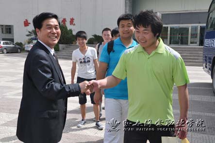 临上车前,党委副书记王爱民亲自到一号楼前送行,并和志愿者合影留念。嘱咐志愿者一定要做好服务工作,服从组委会安排,为海棠学院争光。