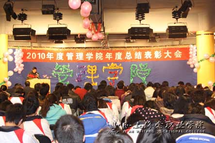 根据学院的要求,管理学院于2011年1月5日晚18:30—21:00在1#楼播音与主持室召开了管理学院年终总结大会。院长冯居秦,党委副书记王爱民,副院长蒋国瑜、吕波等领导出席会议。管理学院全体教职工、兼职辅导员,部分2010级学生参加了会议。