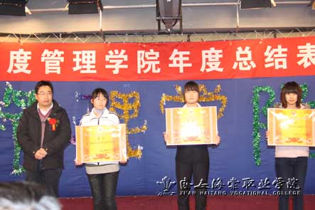 整个会议在严肃、庄重、活跃的气氛中进行,管理学院副院长侯绍义作了全面、深刻的工作报告。吕波副院长宣读了2010年先进集体及先进个人名单,学院为获奖集体和个人颁发了证书。优秀教师、辅导员、 兼职辅导员、学生代表分别作了代表发言。党委副书记王爱民勉励学生要学好功课,积极向党组织靠拢,争取从思想上入党。