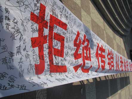 2010年11月30日上午10:00,西安市公安局经济犯罪侦查支队组织部分经济犯罪侦查民警莅临我院开展 “拒绝传销从我做起”签名活动。我院2000余名师生参与活动,即日起,这一活动将在西安各高校陆续进行。