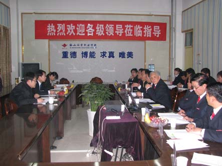 汇报会上,党委书记冯齐昌致欢迎词。院长冯居秦从我院遵守法律、法规和执行情况;招生工作和收、退费情况;党团组织建设、和谐校园建设、安全稳定工作情况;按照学院章程开展活动情况;内部管理机构和人员配备情况;财务状况、收入支出情况(现金流动情况);法人财产权的落实情况等七方面向各位领导汇报了2010年以来我院所做的各项工作。各部门负责人就部门工作情况做了详细汇报。