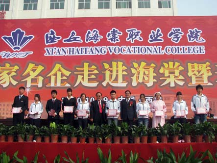 上午9:30, 2010百家名企走进海棠暨表彰大会隆重召开。学院党政领导、100家企业代表出席会议。陕西电视台等17家媒体跟踪采访。