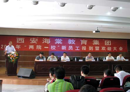 2010年,为满足海棠事业的发展需要,西安海棠教育集团积极吸纳新生力量,加强人力资源储备,着力构建人才梯队,为做好新员工报到工作和迎接新员工的到来,8月3日下午,海棠教育集团及旗下“两院一校”的领导欢聚一堂组织召开了新员工报到暨欢迎大会。教育集团人力资源部部长宋洁主持会议。