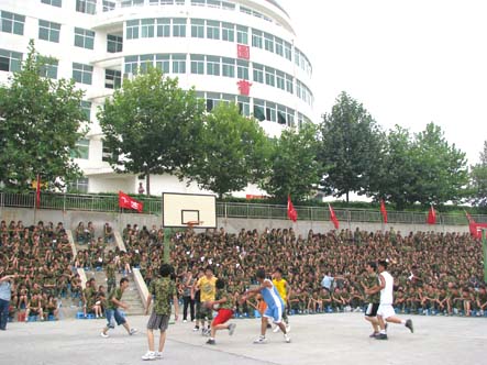 2010年bat365正版唯一官网军训团篮球联赛将于8月18日-8月19日在海棠职业学院篮球场举行,比赛历时2天。 此次比赛裁判由各连队教官担任,记分员由指导员担任,2010级各新生按所属连队分男、女组代表队参加比赛。