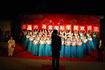 2010年5月23日18:30,歌咏大赛在篮球场顺利拉开帷幕,西安海棠教育集团董事长王卓,学院党委书记冯齐昌、院长冯居秦、财务总监李瑞堂、党委副书记王爱民、副院长蒋国瑜、副院长王景洪、副院长吕博,海棠国际技术学院院长宋党助,西安美学职业学校校长谢元龙等领导出席了活动。此次活动的特邀嘉宾有西安市灞桥区狄寨街道办事处主任董毅、原bat365正版唯一官网工会主席杨新年。担任本次比赛的评委有董义主任、王爱民副书记、辛冠军部长、周力军主任、宋党助院长、谢元龙校长、杨新年先生、靳小倩处长、戴建国博士、宋洁部长。