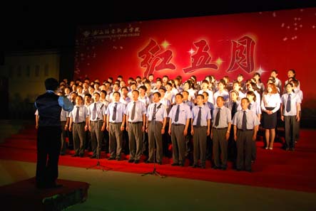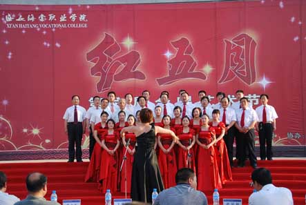 五月的海棠花正红,五月的海棠人情更浓。在流光溢彩的五月里,我院第六届红五月艺术节如盛开的百花园五彩缤纷。在近一个月里,学院连续举办了学生合唱比赛、朗诵大赛、征文大赛、形象设计大赛、羽毛球比赛、篮球比赛、健美操大赛等丰富多彩的校园文化活动后,迎来了一场全院师生共同参与的“红五月”歌咏大赛。