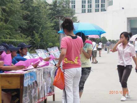 图七:以发放传单的形式让师生了解这次活动的目的。