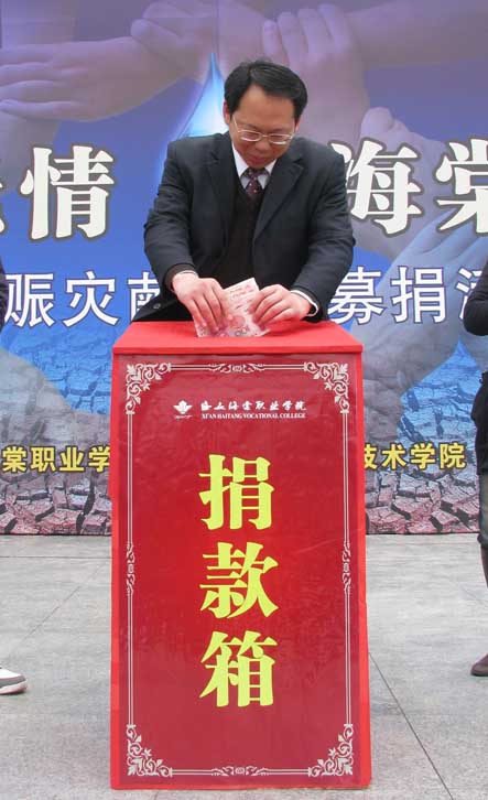 赈灾献爱心募捐活动中,学院董事会成员、院领导、教育集团、中层干部、二级学院领导等广大教职员工和学生都纷纷慷慨解囊,踊跃捐款。王卓总经理以个人的名义率先向灾区捐款一万元。赈灾献爱心活动中,全院师生最终募得包括现金、实物等总价值共计8万余元。