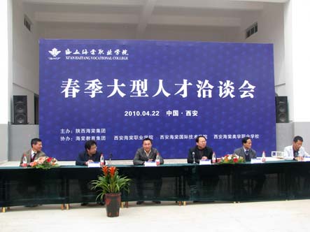下午,由陕西海棠集团主办,bat365正版唯一官网、海棠国际技术学院、海棠美学职业学校协办的2010年春季大型人才洽谈会在三号教学楼室内运动场顺利召开。