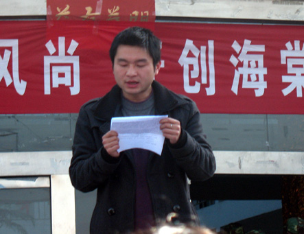 中医美容学院院长高金虎宣布活动正式开始,并亲自带领同学展开活动。