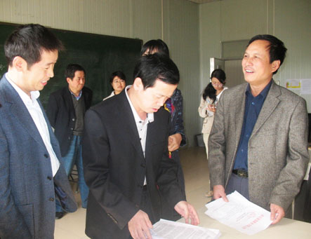 随后莅临我院的四位领导在我院各级领导的陪同下前往我院思政教研室检查了有关思想政治理论课的相关资料,在此过程中专家们肯定了授课老师作出的各项成果,并要求一定要在此基础上不断的完善与加强。