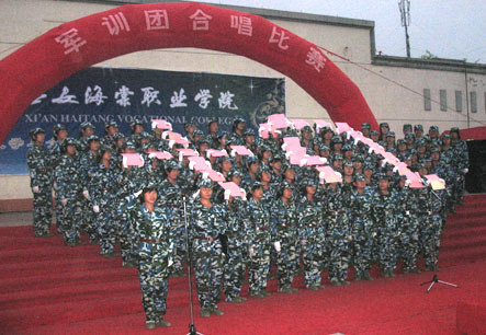 又是一年秋风送爽时,又是一年花好月圆时。 为了活跃2009年军训团的文化生活,进一步增强参训学员的文化素质,充分展示当代大学生的精神风貌,营造健康和谐的文化氛围,在军训指挥部的组织下,西安海棠学院09届军训合唱比赛于2009年8月23日晚在我院东操场隆重举行。我院参训师生欢聚一堂,共同庆祝了此次活动。