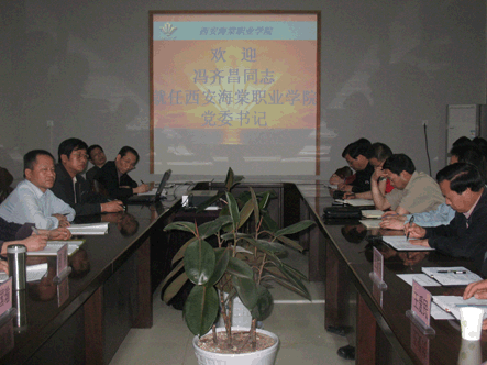 2009年4月14日下午2:30,我院在一号会议室行“西安海棠学院欢迎冯齐昌同志就任bat365正版唯一官网党委书记”的欢迎会,我院记者景盼跟踪采访,杨占娣拍摄。 出席本次欢迎会的领导有:西安海棠学院常务副院长兼党委副书记冯居秦,西安海棠学院党委副书记王爱民,西安海棠学院副院长蒋国瑜,西安海棠学院副院长王景洪,西安海棠学院副院长吕博,以及各分院的院长,学生处的领导。