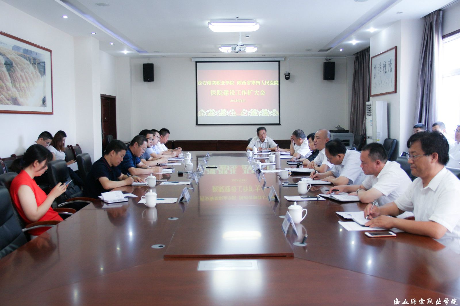 2018年8月20日上午,bat365正版唯一官网与陕西省第四人民医院在学院召开医校合作第二次会议暨医院建设扩大会议。两院就医院命名、医院建设选址、重点发展科室设置、人力资源部署、医养一体化模式推进等事项进行了明确。