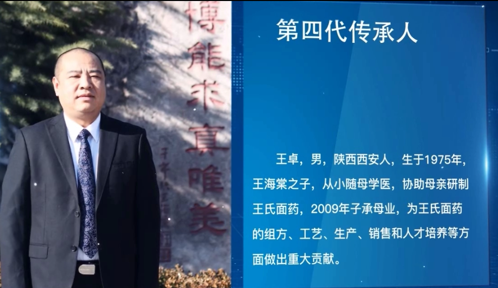 王海棠教授之子——王卓教授子承母业,与时俱进,在原有面药成分研制基础上,在组方、工艺、生产、销售和人才培养等方面进行深入研究,为面药的发展做出了重大贡献。