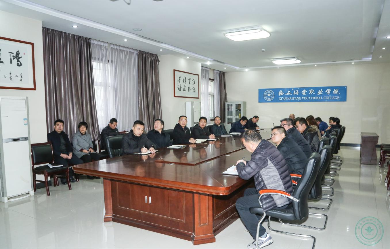2018年12月10日上午,海棠集团重点项目建设宣讲会在bat365正版唯一官网顺利召开。海棠集团董事长、海棠职业学院理事长王卓,海棠职业学院院长冯居秦、副院长吕波、许春海、郭国庆、杨国峰,海棠职业学院附属医院筹备处主任白正发,学院发展规划处处长陈晓东、征地办公室主任胡刚,海棠技师学院院长王文强、副院长刘志毅、袁克江,西安仁美建设工程有限公司总经理谭军及学院各职能处室负责人出席本次会议。本次会议分别就海棠职业学院四个重点建设项目:附属医院建设、海棠创业中心建设、海棠学院基础建设、海棠学院二期征地工作进展进行了汇报。