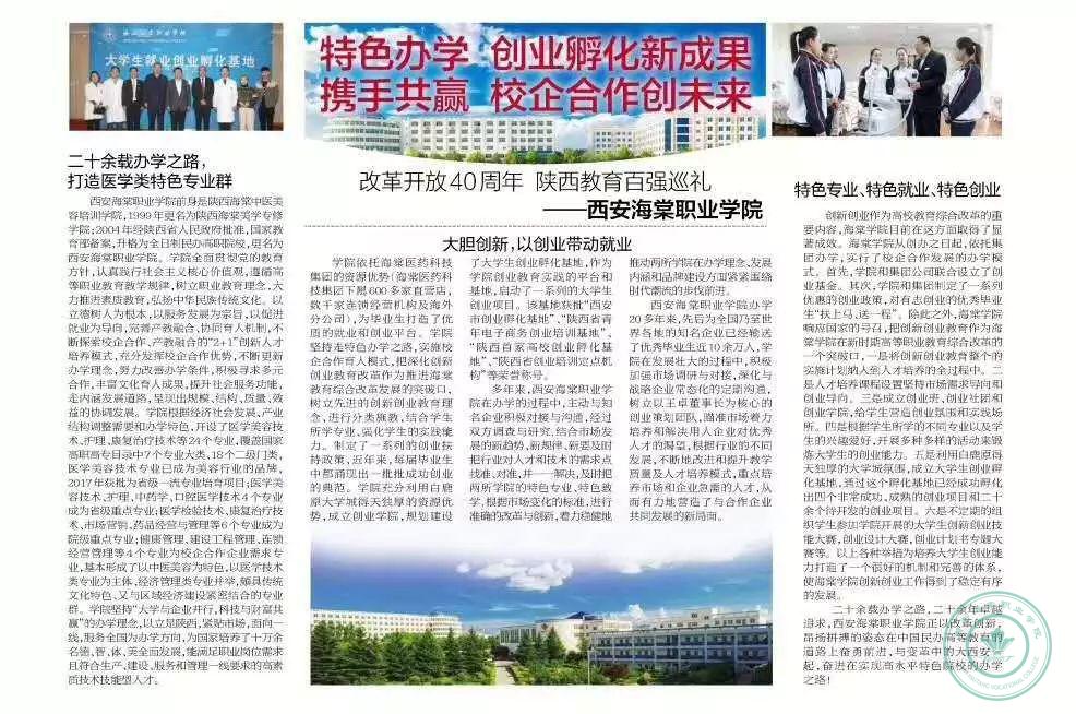 在百万读者参与“改革开放40年 陕西教育百强”评选活动中,我院荣获改革开放四十周年陕西教育百强评选“陕西名校荣誉称号”我院王卓理事长荣获陕西教育改革创新带头人荣誉称号!我院创始人王海棠教授荣获陕西教育领军人物。