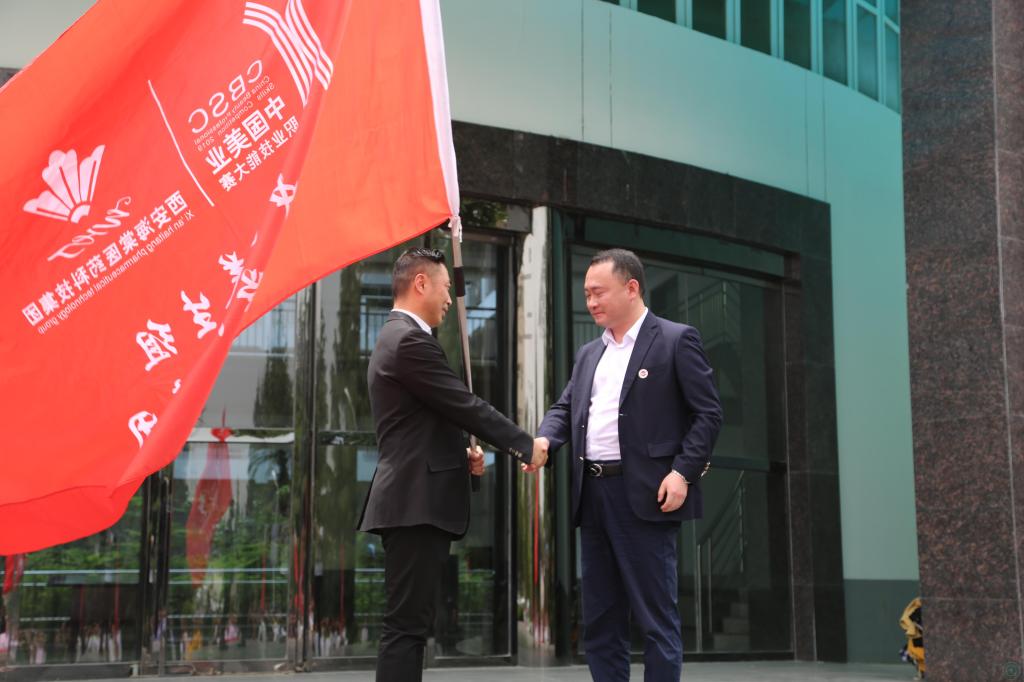 西安海棠技师学院王文强院长为所有参赛队伍授旗。