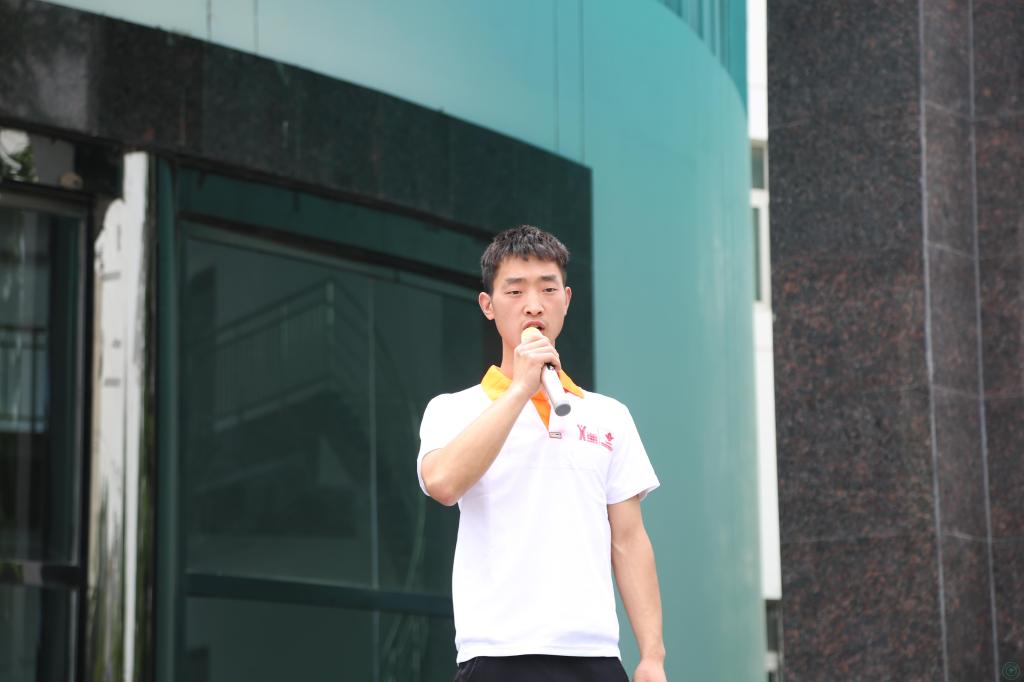 参赛选手刘荣盼代表发言。刘荣盼首先感谢了为此次参赛选手培训的指导老师以及相关工作人员,他谈到,能够参与美业职业技能大赛是一次新的挑战,也是新的机遇,相信通过比赛能够精进技术,获得提升,希望学校放心,所有参赛选手将为海棠荣誉而战!
