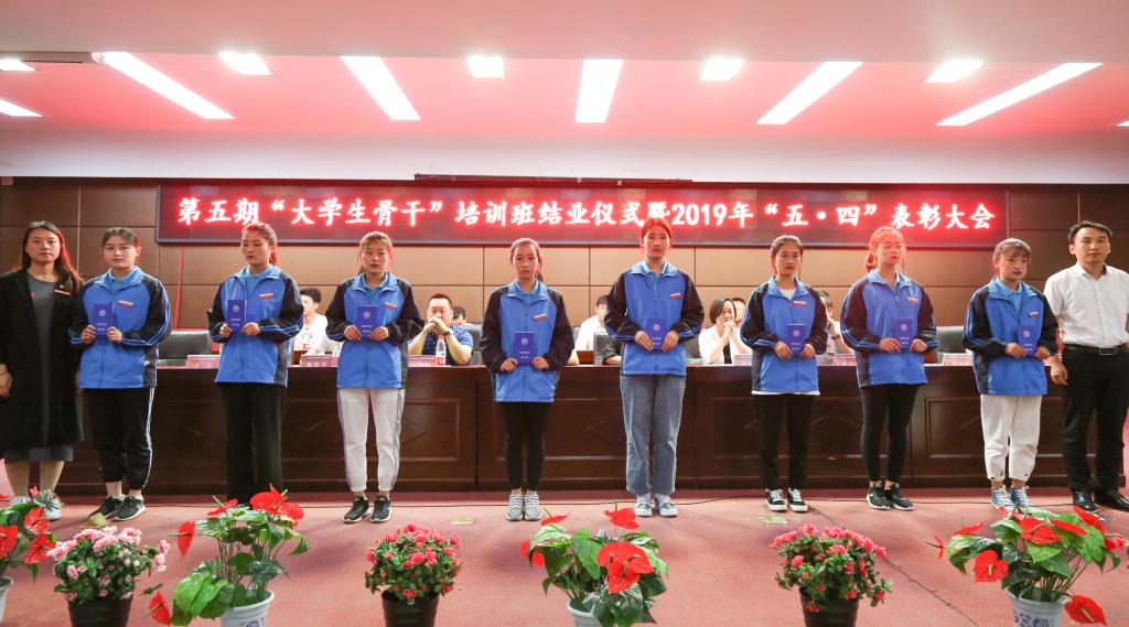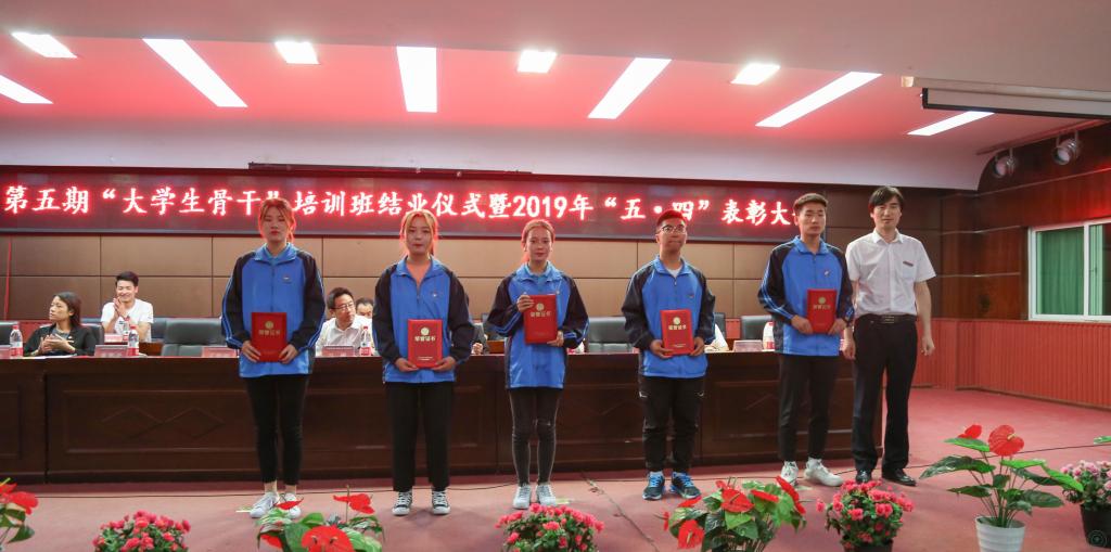 为进一步繁荣校园文化生活,服务学生健康成长,激励全院广大青年学子勤奋学习、开拓创新,5月22日下午,我院第五期“大学生骨干”培训班结业仪式暨2019年“五·四”表彰大会于学术报告厅顺利举办,学院党委书记张桂荣,党委副书记、副院长吕博,党办、学生处、团委、二级学院等领导出席大会,第五届大骨班参训学员及五·四优秀青年学生等500余名学生参与大会。大会由团委康有为副书记主持。