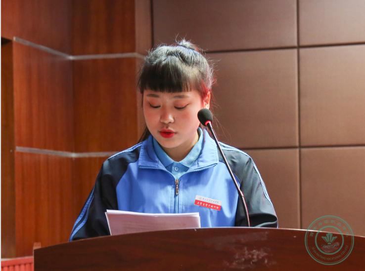 大骨优秀学员代表医美1810班屈田田同学发言。屈田田同学首先回顾了培训时所获所得,感谢学院能够给予学生提升自我的发展平台,她指出,作为一名学生干部要以身作则,要以饱满的热情和投入到学习工作当中,高标准、严要求做好组织团结学生工作,为班级的建设和学校的建设贡献微薄之力。