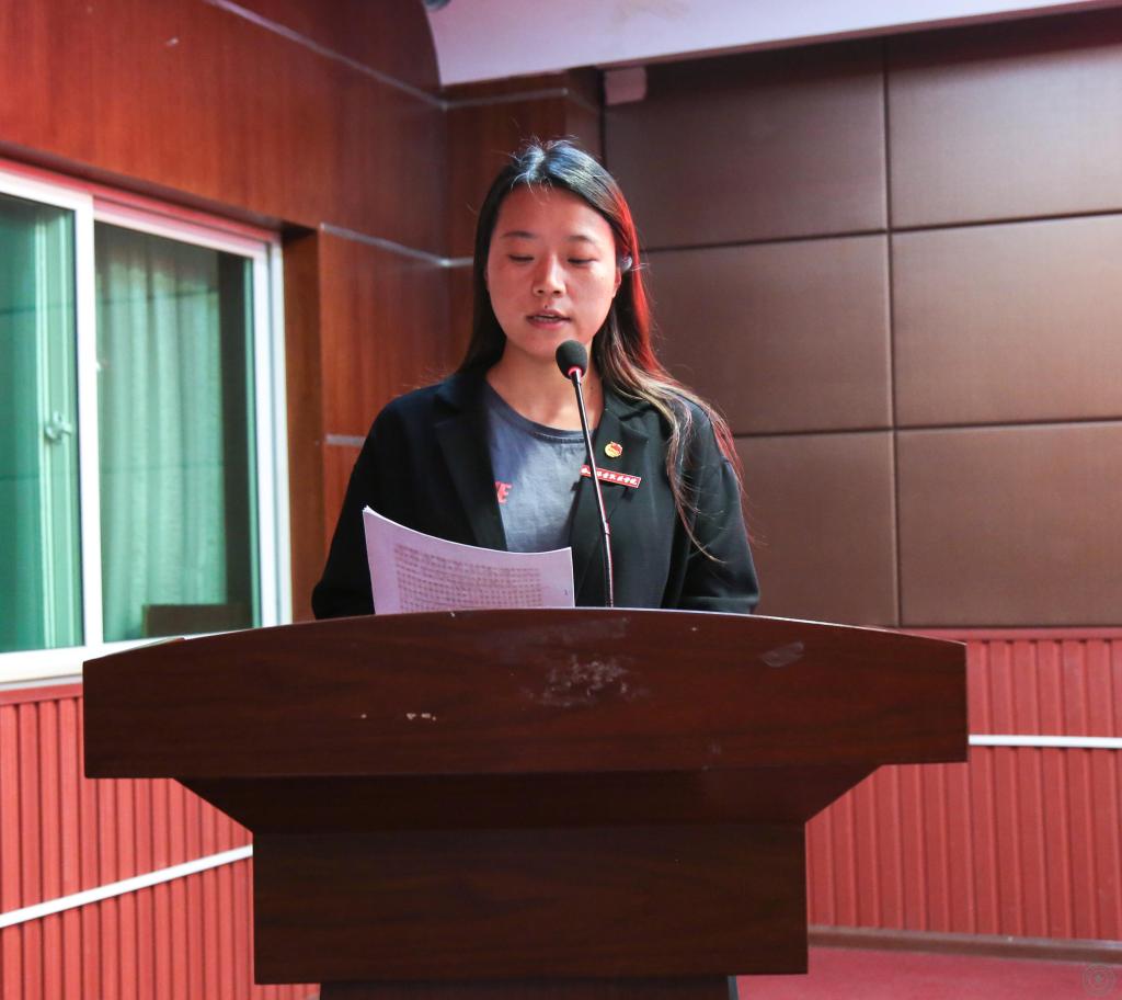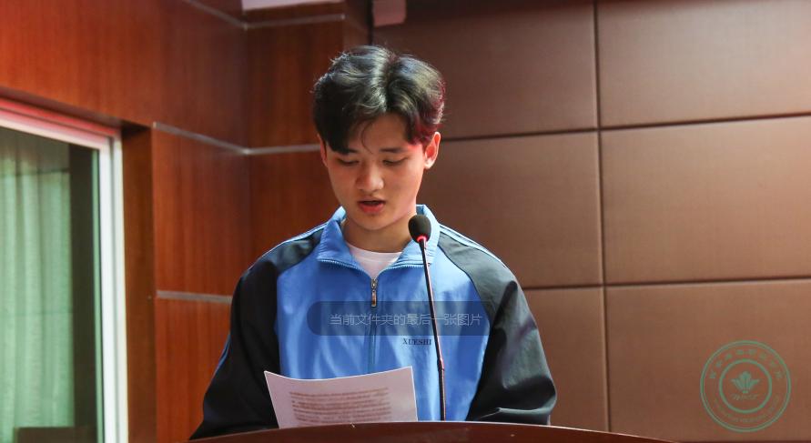 “五·四”获奖学生干部代表陆登魁发言。他代表全体获奖学生干部感谢学院对学生发展的支持,分享了近期学习中的感悟,并表示,未来将会牢记青春使命,脚踏实地去努力,提升自身综合素质,做一名全面发展的青年大学生。