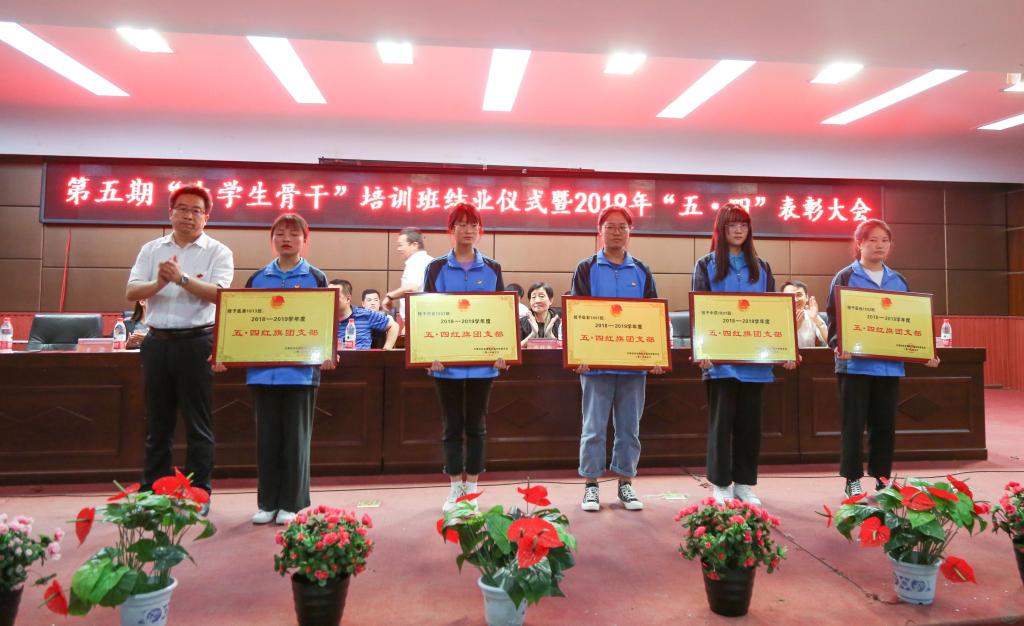 党办侯月瑞主任宣读2019年“五·四”表彰决定。现场与会领导为“五·四”获奖单位及个人颁奖。