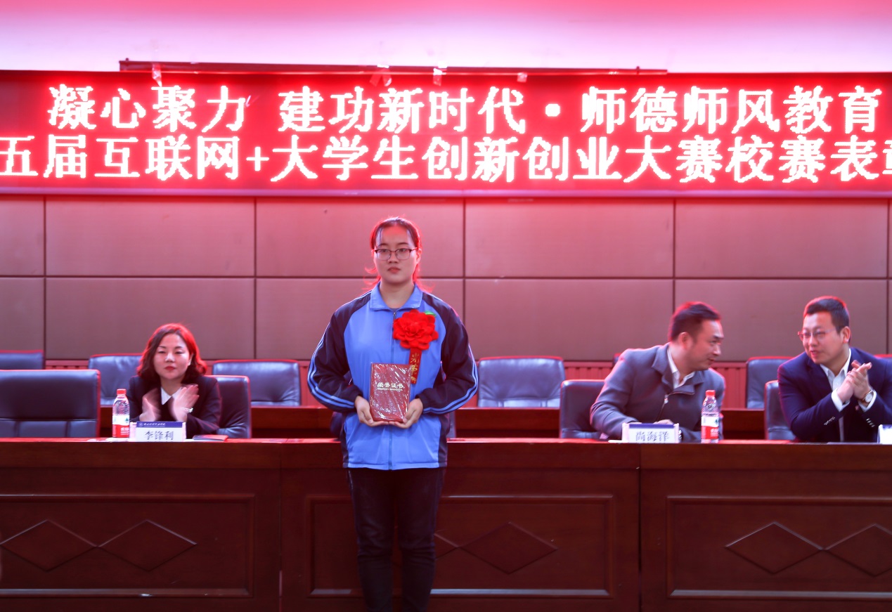 首先,教务处处长李锋利宣读《bat365正版唯一官网第五届“互联网+”大学生创新创业大赛校赛表彰决定》并充分肯定了我院参赛团队在此次“互联网+”大赛中取得的成绩。同时,希望各院以本次大赛为契机,认真总结经验,不断深化创新创业教育改革,加强学生创新创业能力。并表示我院将继续坚持以学生全面发展为中心,通过创新创业教育与思想政治教育的协调推进,努力培养理想信念坚定、专业知识扎实、具有创新创业能力、德才兼备的有为人才。