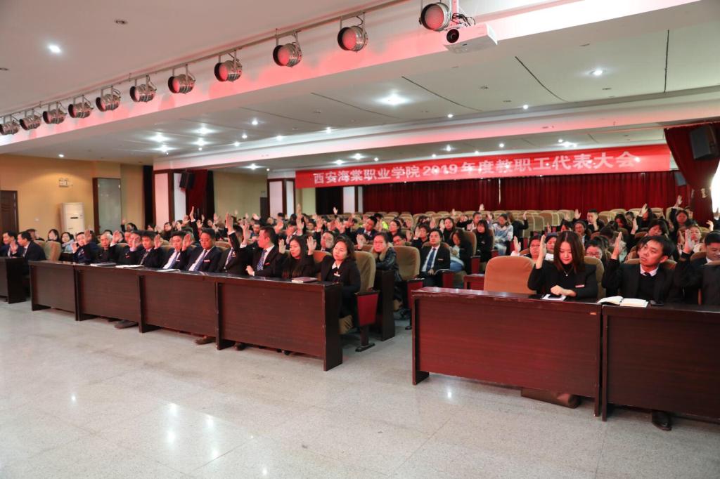 会议上,全体教职工代表集体审议并举手表决,全票通过了学院“2019-2020学年财务预算工作报告"、“2019-2020学年人力资源规划工作报告”、“学院年度工作报告”及新修订的“bat365正版唯一官网章程”。