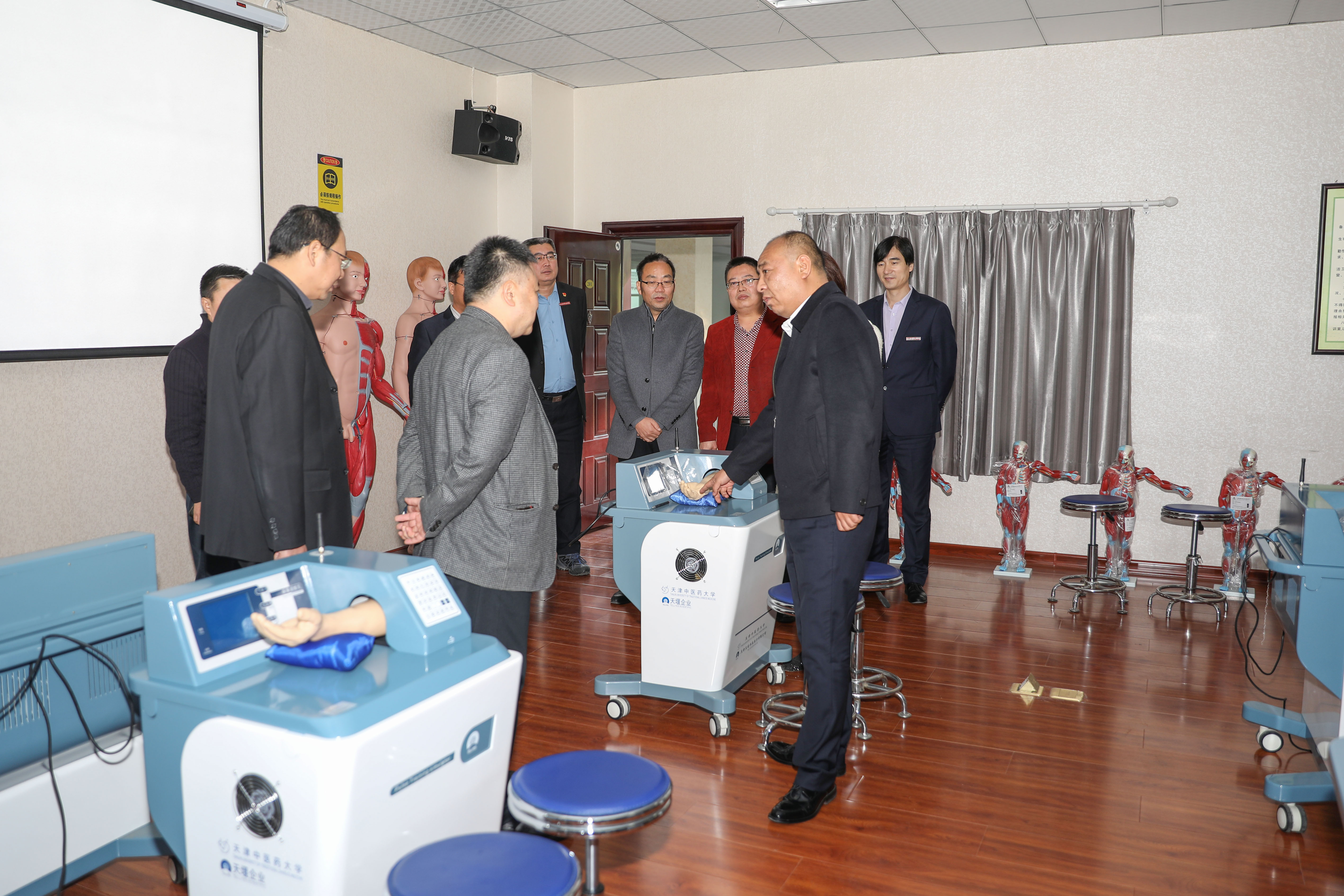 贾院长一行人先后对我院医学美容实训中心、医学技术实训中心、校医院进行了参观。