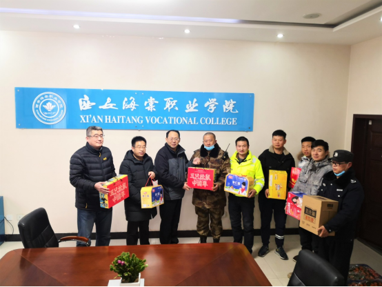 1月24日下午,在庚子新春到来之际,院长冯居秦一行来到学院慰问春节期间坚守岗位的各单位值班人员,向他们致以新春佳节的诚挚问候和安全嘱托,同时对学院重点区域进行安全巡查。副院长吕波、高琦,创业就业处处长王小科陪同慰问。