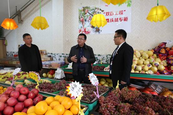 随后,一行人员前往学院“双百工程“优质农产品销售处,了解我院消费扶贫专柜建设和经营情况。
